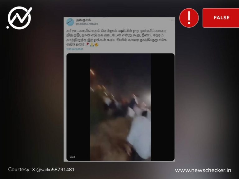 கர்நாடகாவில் ரதம் செல்லும் வழியில் காரை நிறுத்திய இஸ்லாமியர் என்று பரவும் தகவல் தவறானதாகும்.