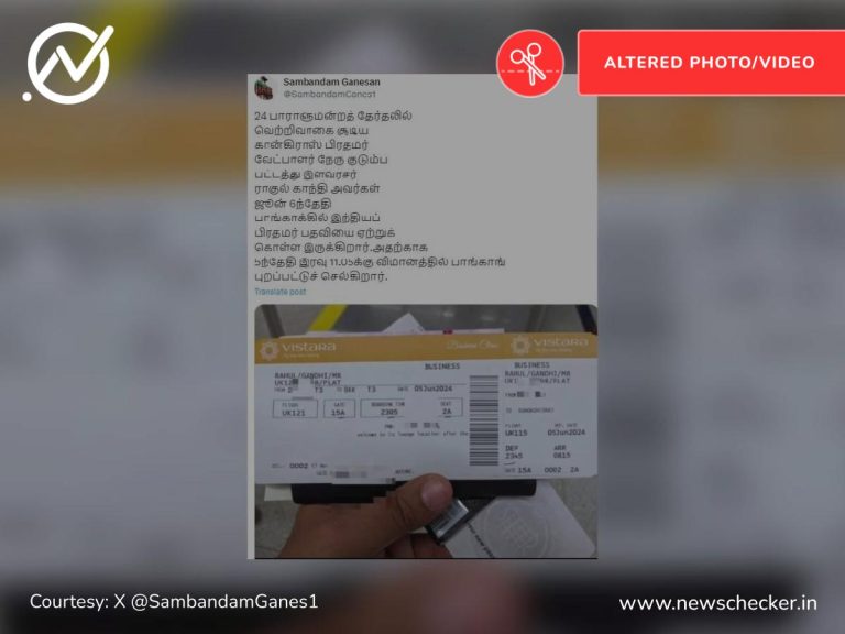 தேர்தல் முடிவுகள் அறிவிக்கப்பட்டவுடன் ராகுல் காந்தி பாங்காங் செல்ல இருப்பதாகப் பரவும் போர்டிங் பாஸ் புகைப்படம் போலியானதாகும்.