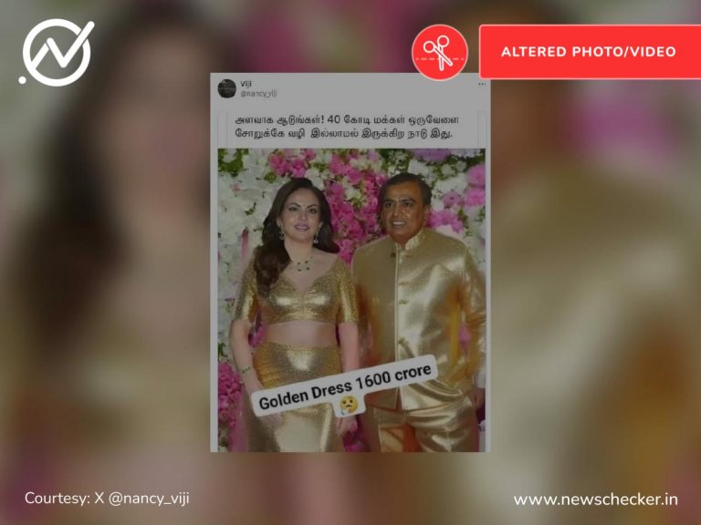 அம்பானி குடும்பத்தினர் தங்கத்தால் ஆன உடையில் மின்னுவதாகப் பரவும் புகைப்படங்கள் AI மூலமாக உருவாக்கப்பட்டவையாகும்.