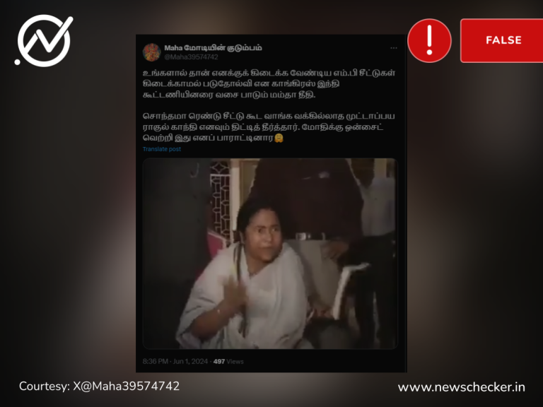 இந்தியா கூட்டணியினரையும் ராகுல் காந்தியையும் மம்தா பானர்ஜி திட்டியதாக பரப்பப்படும் வீடியோத்தகவல் முற்றிலும் தவறானதாகும்.