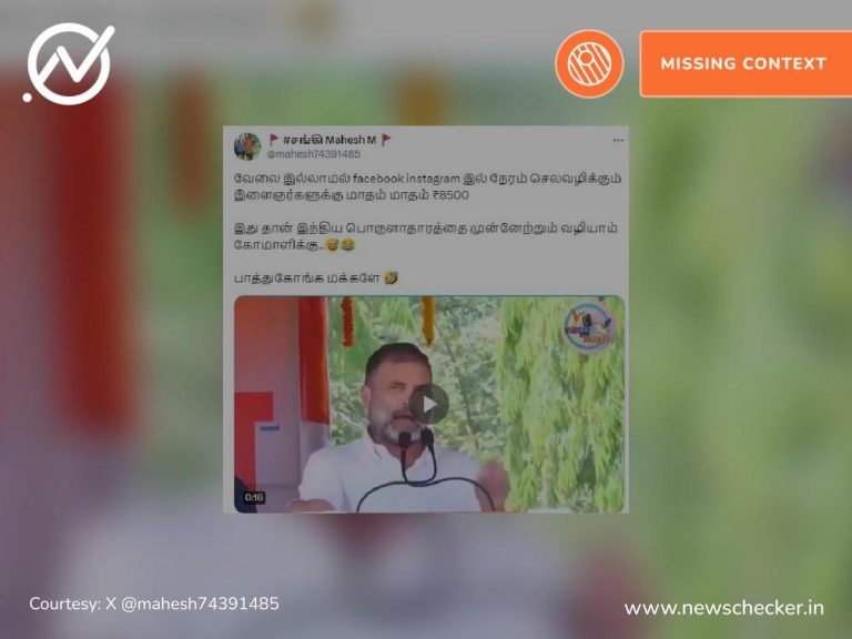 வேலை இல்லாமல் சமூக வலைத்தளங்களில் பொழுதை கழிக்கும் இளைஞர்களுக்கு மாதாமாதம் உதவித்தொகை வழங்கப்படும் என்று ராகுல் காந்தி கூறியதாகப் பரவும் வீடியோ தகவல் தவறானதாகும்.