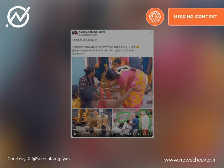 தேர்தல் முடிந்ததும் மதுரவாயல் கோயில் தமிழக அரசால் இடிக்கப்பட்டதாகப் பரவும் வீடியோ தகவல் தவறானதாகும்.