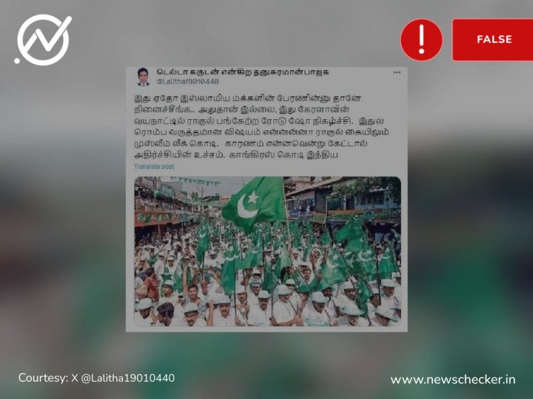 கேரளாவில் ராகுல் காந்தி பங்கேற்ற ரோடு ஷோ நிகழ்ச்சியில் முஸ்லீம் லீக் கொடிகள் என்று பரவும் புகைப்படம் கடந்த 2016ஆம் ஆண்டு எடுக்கப்பட்டதாகும்.