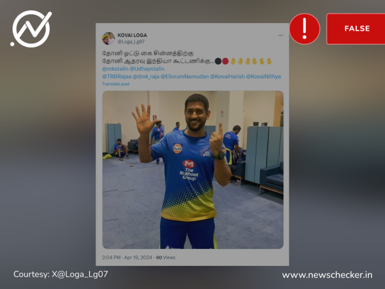 தோனி காங்கிரஸ் கட்சிக்கு ஆதரளித்து கை சின்னத்தில் வாக்களிக்க கூறியதாக பரவும் தகவல் தவறானதாகும்.