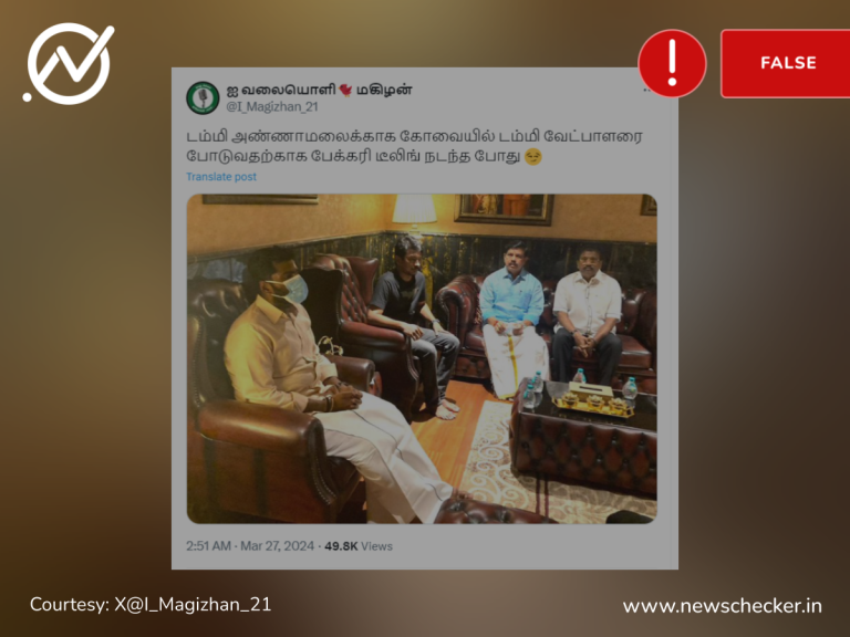 (உங்களுக்கு ஏதேனும் ஒரு தகவல் குறித்து சந்தேகம் ஏற்பட்டாலோ அல்லது ஏதாவது ஒரு தகவலின் உண்மைத்தன்மைக் குறித்து அறிய விரும்பினாலோ 9999499044 என்கிற வாட்ஸ்ஆப் எண்ணிற்கோ, அல்லது checkthis@newschecker.in என்ற மின்னஞ்சல் முகவரிக்கோ உங்கள் கேள்விகளை அனுப்பலாம்.