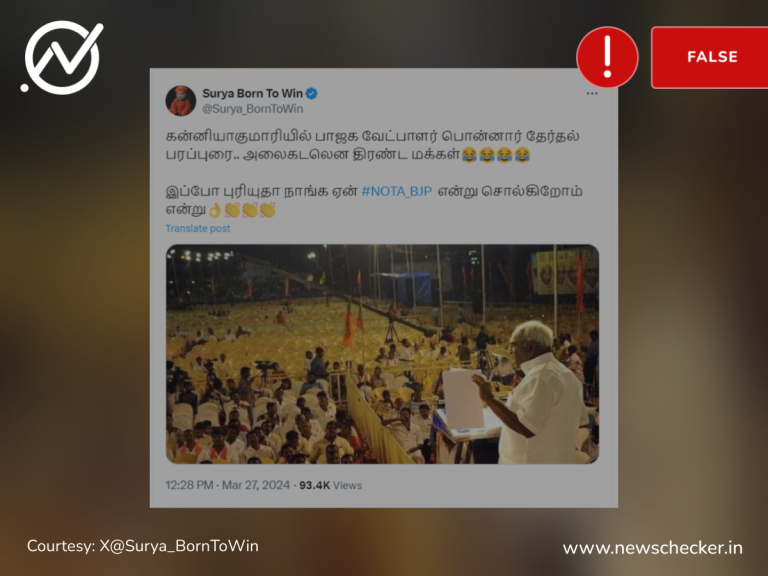 கன்னியாகுமரியில் பொன் ராதாகிருஷ்ணனின் தேர்தல் பரப்புரை என்று பரவும் புகைப்படமானது 2017 ஆம் ஆண்டின் பழைய படமாகும்.