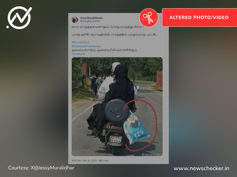 பாரத் அரிசியை இஸ்லாமிய குடும்பத்தினர் வாங்கி செல்வதாக வைரலாகும் புகைப்படம் எடிட் செய்யப்பட்டு மாற்றப்பட்டதாகும்.