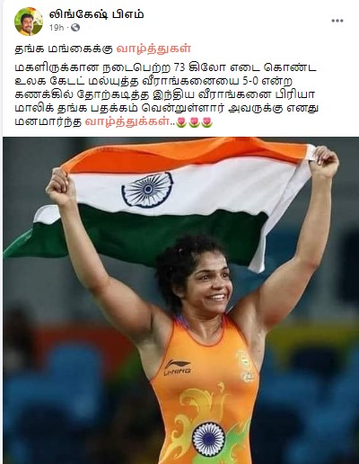 இதேபோல் வெகு ஜன மக்களும் பிரியா மாலிக்கிற்கு தங்கள் வாழ்த்துக்களை சமூக வலைத்தளங்களில் தொடர்ந்து தெரிவித்து வருகின்றனர். ஆனால் இந்த வாழ்த்து பதிவுகளில் பிரியா மாலிக் என்று குறிப்பிட்டு சில வீராங்கனைகளின் படங்களும் பகிரப்பட்டு வருகின்றது.