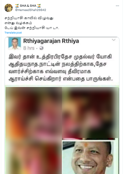 உ.பி. முதல்வர் யோகி ஆதித்யநாத் தகாத பாலியல் உறவில் ஈடுபட்டதாக பரப்பப்படும் புகைப்படங்களில் இருப்பது யோகி ஆதித்யநாத் அல்ல; அது சித்தரிக்கப்பட்ட வீடியோவில் நடித்த நடிகர் என்பது நமக்கு கிடைத்த ஆதாரங்களின் வாயிலாக தெளிவாகியுள்ளது.