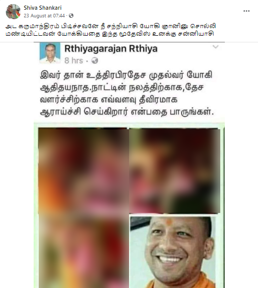 உ.பி. முதல்வர் யோகி ஆதித்யநாத் தகாத பாலியல் உறவில் ஈடுபட்டதாக பரப்பப்படும் புகைப்படங்களில் யோகி ஆதித்யநாத் இருக்கும் புகைப்படத்தை தவிர்த்து மற்ற மூன்று படங்களிலும் அதில் உள்ள நபர்களின் முகங்கள் தெரியாதவாறு தெளிவற்று இருந்தது.