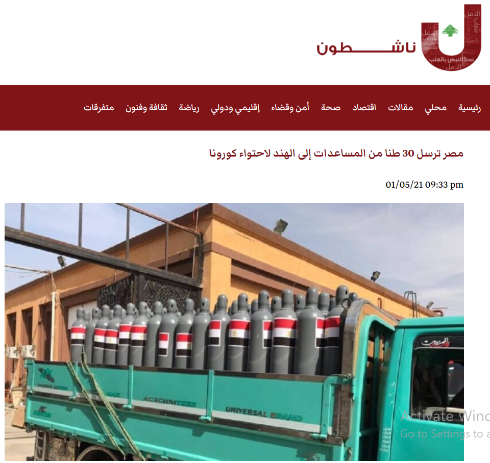 مذکورہ تحقیقات سے واضح ہوچکا کہ ترکی اور بھارت کے درمیان طبی سہولیات دینے کو لے کر بات چیت ہوئی تھی۔ پھر ہم نے کولاج والی وائرل تصاویر کو ایک ایک کر کے اویسم اسکرین شارٹ کی مدد سے کیفریم میں تقسیم کیا اور ان میں سے آکسیجن سے لدی گاڑی والی تصویر کو ریورس امیج سرچ کیا۔ اس دوران ہمیں نیوز ایکس اور عربی ویب سائٹ ناشطون پر پہلی تصویر کے ساتھ شائع 1 اور 2 مئی کی خبریں ملیں۔ دونوں رپورٹس کے مطابق گاڑی پر لدی آکسیجن والی وائرل تصویر ترکی کی نہیں ہے، بلکہ مصر کی جانب سے بھیجی گئی طبی سہولیات کی ہے۔