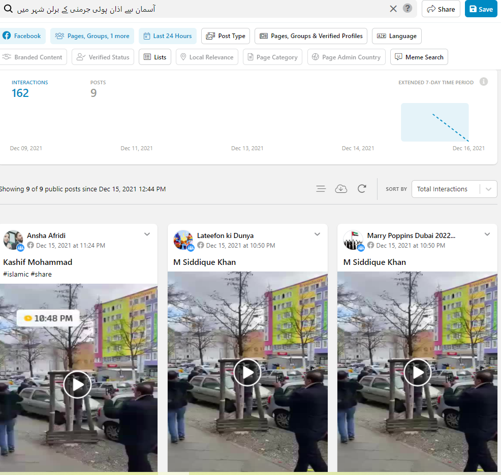 کیا جرمنی کے برلن شہر میں غیب سے اذان کی آواز سنائی دے رہی ہے؟ اس دعوے کے ساتھ وائرل ویڈیو کی سچائی جاننے کے لئے ہم نے سب سے پہلے وائرل ویڈیو کو انوڈ کی مدد سے کیفریم میں تقسیم کیا اور ان میں سے ایک فریم کو گوگل لینس ٹولس کی مدد سے امیج سرچ کیا۔ لیکن وہاں ہمیں کچھ بھی اطمینان بخش نتائج نہیں ملے۔