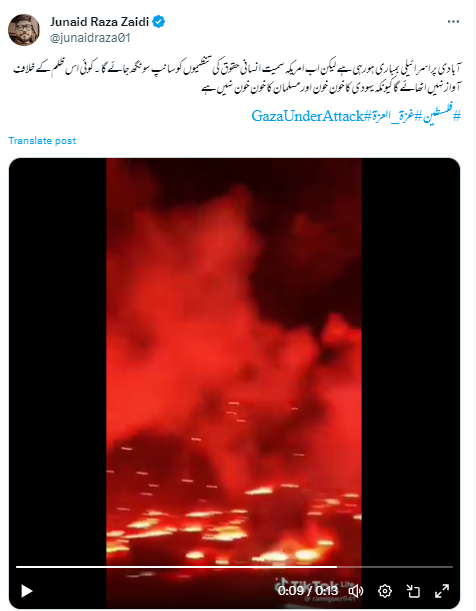 واہٹس ایپ، فیس بک اور ایکس پر غزہ پر اسرائیل کے حملے کا بتاکر ایک ویڈیو شیئر کی جا رہی ہے۔ جس میں بلند عمارتوں پر آگ کے شعلے نظر آ رہے ہیں۔ دعویٰ کیا جا رہا ہے کہ یہ ویڈیو اسرائیل کی جانب سے غزہ پر بمباری کی ہے، جس کی وجہ سے عمارتیں تباہ ہو رہی ہیں۔
