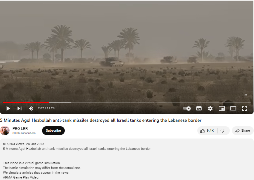 ویڈیو کے ڈسکرپشن میں دی گئی معلومات سے بھی واضح ہوا کہ یہ ویڈیو محض ایک ورچوئل گیم سمولیشن ہے۔ اس میں آرما گیم پلے ویڈیو کا بھی ذکر کیا گیا ہے۔ساتھ ہی یہ بھی بتایا گیا ہے کہ یہ ویڈیو بوہیمیا انٹیریکٹیو اے ایس کنٹنٹ کی مدد سے تیار کی گئی ہے۔