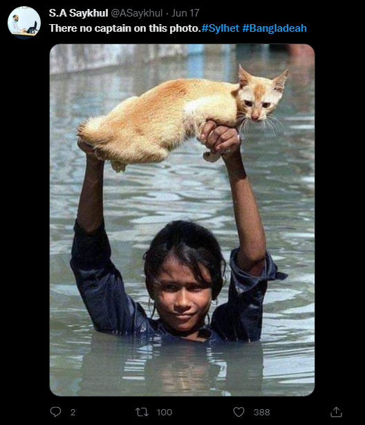 انگلش کیپشن کے ساتھ بھی ٹویٹر پر اس تصویر کو ہیش ٹیگ بنگلہ دیش اور سلہٹ لکھ کر شیئر کیا گیا ہے۔