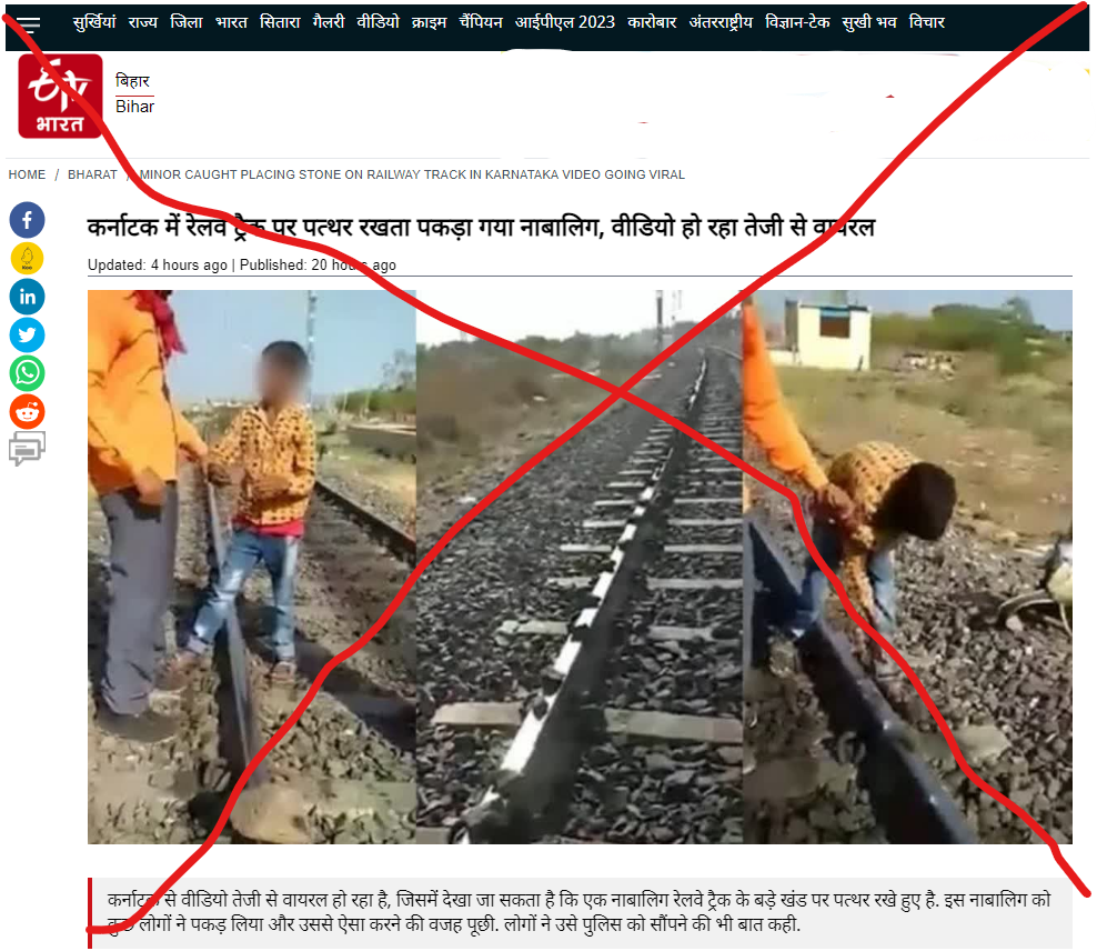 مزید معلومات کے لئے ہم نے کلبرگی کے واڑی ریلوے اسٹیشن کے سب انسپکٹر ایم پاشا سے رابطہ کیا۔ انہوں نے تصدیق کی کہ “یہ ویڈیو 2018 کی ہے اور اس معاملے میں کوئی مقدمہ درج نہیں کیا گیا تھا”۔ انہوں نے یہ بھی کہا کہ “بچے کھیل-کھیل میں ریلوے کی پٹریوں پر پتھر رکھ دیتے ہیں، یہ کوئی سنجیدہ بات نہیں ہے۔ پرانی ویڈیو نے اڈیشہ ریل حادثے کے بعد سے لوگوں کا دھیان اپنی طرف کھینچ لیا ہے، یہاں تک کہ ریلوے پولس کے سینیئر حکام نے بھی اس ویڈیو سے متعلق معلومات طلب کی ہے”۔