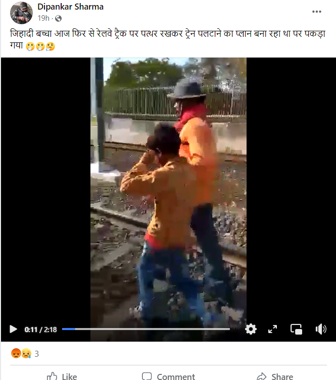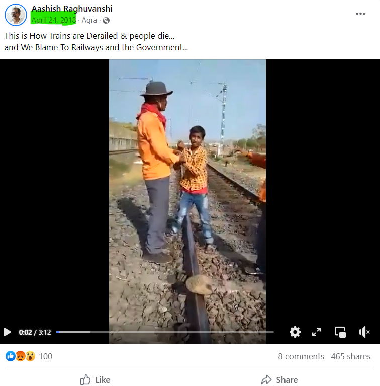 اویسم اسکرین شارٹ کی مدد سے ہم نے ویڈیو کے ایک فریم کو گوگل ریورس امیج سرچ کیا۔ جہاں ہمیں ریلوے ٹریک پر پتھر والی ہوبہو ویڈیو 24 اپریل 2018 کو شیئر شدہ ‘آشیش رگھوونشی’ نام کے ایک فیس بک پیج پر ملی۔ یہاں سے یہ واضح ہوا کہ ویڈیو پرانی ہے، لیکن اس حوالے سے کوئی بھی میڈیا رپورٹس ہمیں موصول نہیں ہوئی۔