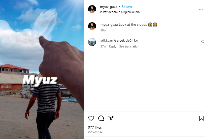 پھر ہم نے میوز غزہ کیورڈ سرچ کیا تو اس نام کا ٹک ٹاک اور انسٹاگرام ہینڈل ملا۔ جسے اسکرال کرنے پر ہمیں وائرل ویڈیو میں نظر آنے والے سبھی ویڈیوز ملیں۔ لیکن میوز غزہ نے یہ واضح نہیں کیا ہے کہ ویڈیو ایڈیٹڈ ہے۔ البتہ میوز کے پروفائل پر دی گئی معلومات کے مطابق وہ ایک اسپوڑٹ اور ری کریئٹر ہیں۔ اس کے علاوہ ہم نے میوز کے دیگر ویڈیو کو دیکھا تو معلوم ہوا کہ میوز غزہ کے انسٹاگرام پر موجود زیادہ تر ویڈیوز ڈیجیٹلی تیار کی ہوئی ہے۔ ویڈیو یہاں، یہاں، یہاں اور یہاں دیکھ سکتے ہیں۔