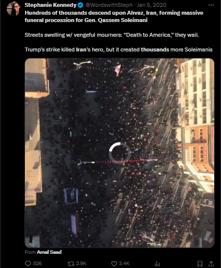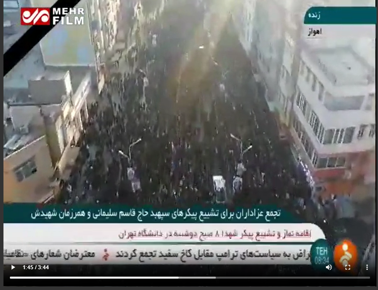 مزید تحقیقات کے دوران ہمیں 5 جنوری 2020 کو شائع میل آن لائن و ایرانی نیوز ایجنسی مھر کی رپورٹس ملیں۔ جس میں ایران کے اہواز میں قاسم سلیمان کی آخری رسومات کے دوران لاکھوں افراد کے شامل ہونے کا ذکر کیا گیا ہے اور رپورٹس میں شامل ویڈیو اور تصاویر میں بھی وائرل ویڈیو جیسے مناظر بخوبی دیکھے جاسکتے ہیں۔