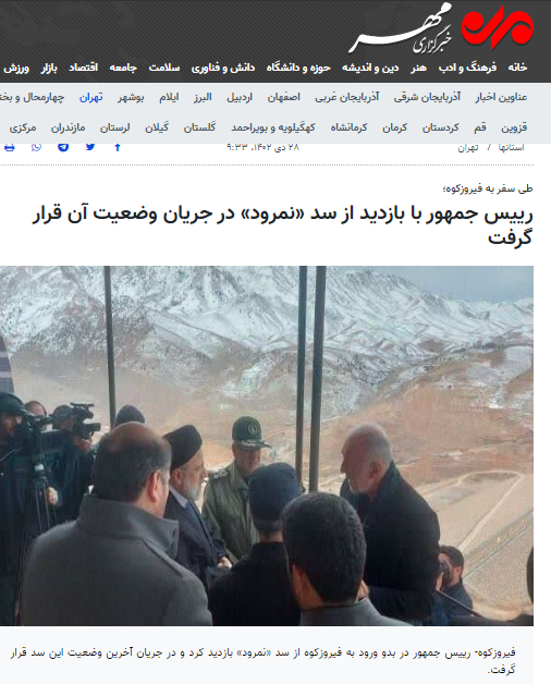مزید تحقیقات کے دوران ہمیں کئی ایرانی میڈیا رپورٹس موصول ہوئیں، جس میں ایرانی صدر ابراہیم رائیسی کے فیروزکوہ کے نمرود ڈیم کے دورے کا ذکر کیا گیا ہے۔ پوری خبر یہاں اور یہاں پڑھی جا سکتی ہیں۔