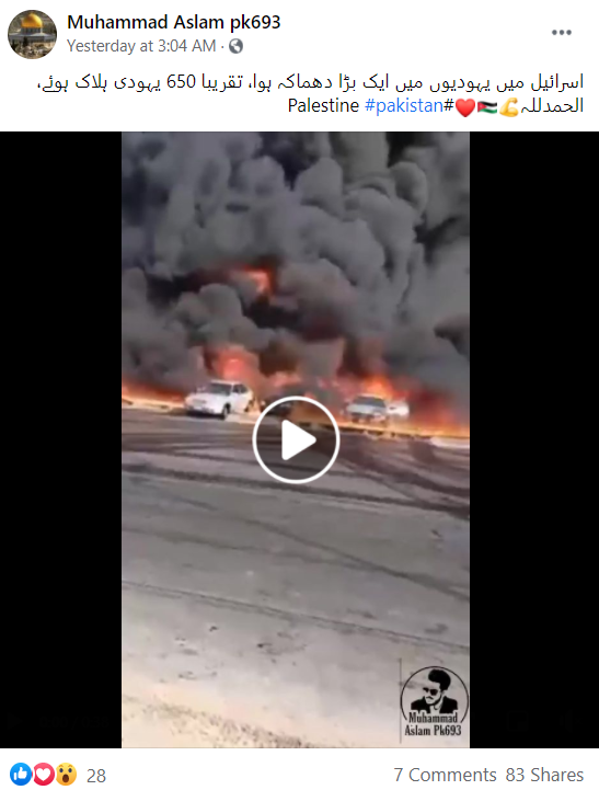 سوشل میڈیا پر 29 سیکینڈ کا ایک ویڈیو خوب وائرل ہو رہا ہے۔ یوزر کا دعویٰ ہے کہ یہ ویڈیو اسرائیل میں ہوئے دھماکے کا ہے”۔