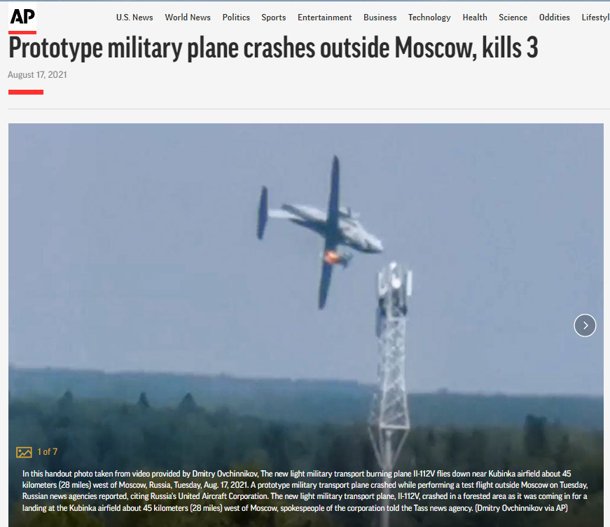 مزید سرچ کےد وران ہمیں روسی پروٹوٹائپ کارگو طیارہ آئی ایل-112وی کے حادثے سے متعلق ایسوسی ایٹ پریس اور کنیڈین نیوز ویب سائٹ سی ٹی وی نیوز پر خبریں فراہم ہوئیں۔ جس میں دوران پرواز طیارہ میں لگی آگ کی ویڈیو کو روس کے آئی ایل-112وی حادثے کا بتایا گیا ہے۔