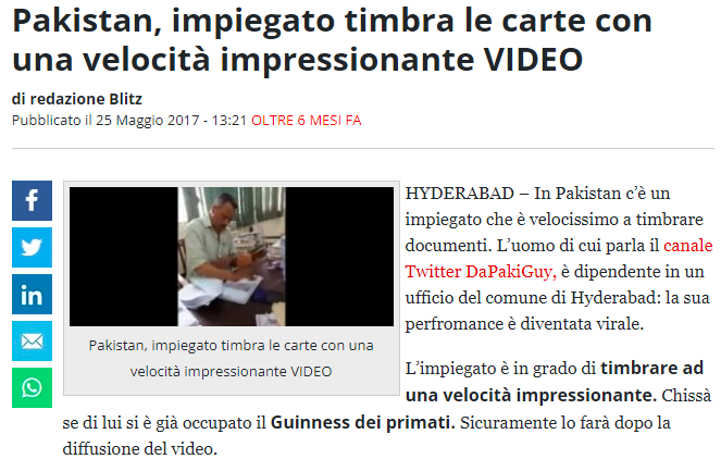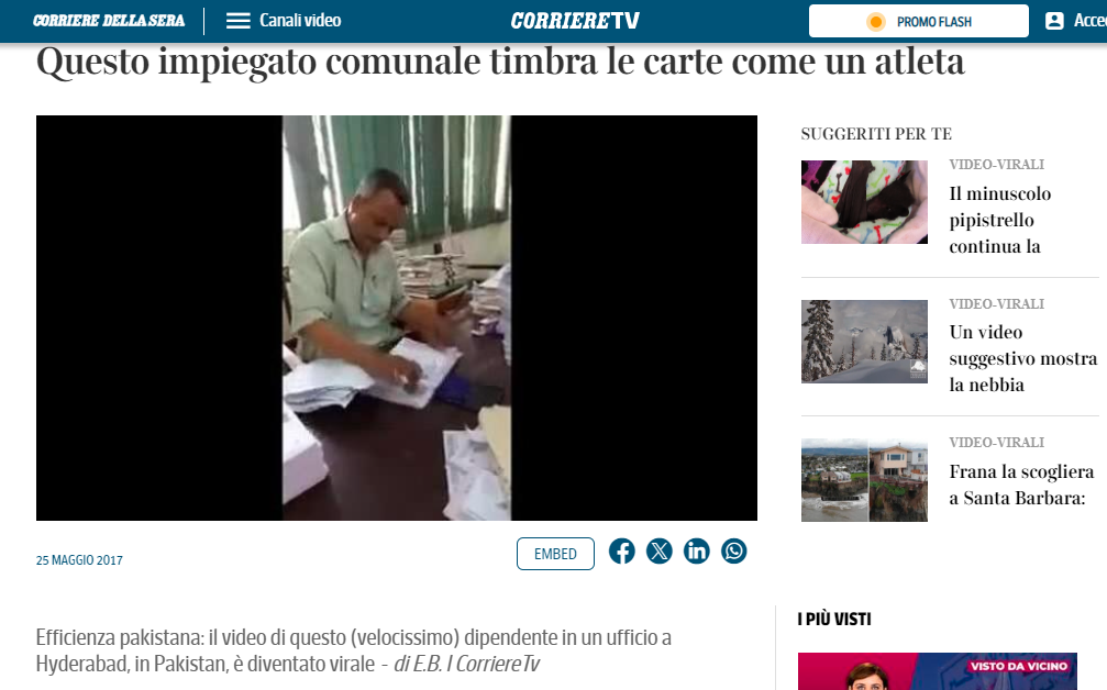 مزید سرچ کے دوران ہمیں گراف بائیڈو نامی ٹول پر متعدد غیر ملکی ویب سائٹس کے لنک فراہم ہوئے۔ ان میں سے چینی زبان میں شائع آرٹیکلس میں اس ویڈیو کو بھارتی سرکاری ملازم کا بتایا گیا ہے۔ وہیں اٹیلین زبان میں شائع 2017 کی رپورٹس میں اس ویڈیو کو پاکستان کے سرکاری ملازم کے پیپر پر تیز رفتاری سے مہر لگانے کا بتایا گیا ہے۔