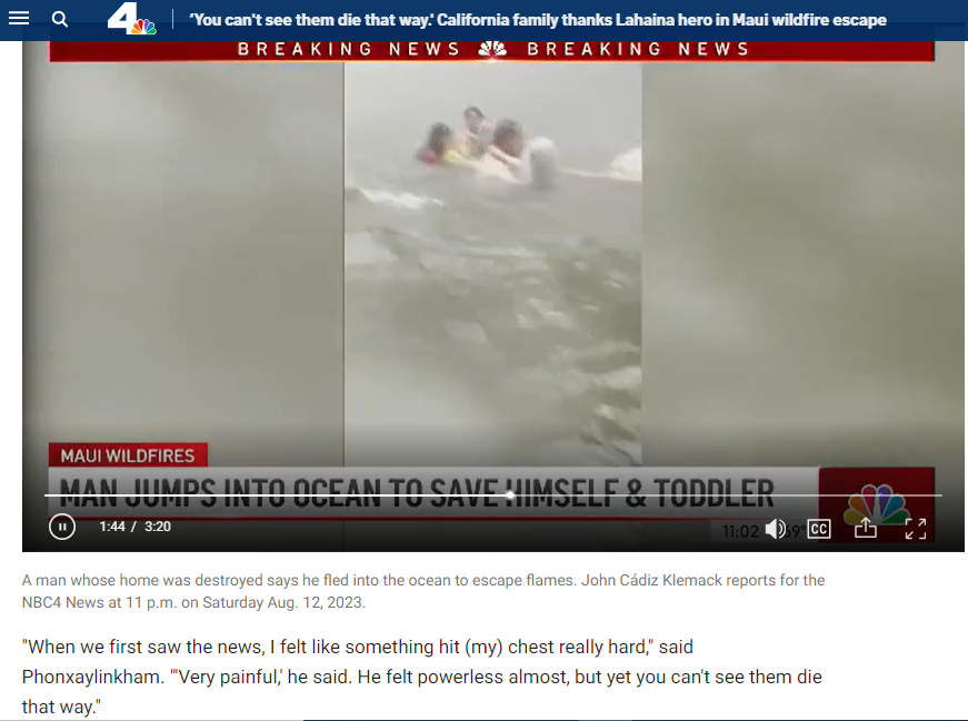 لہٰذا نیوز چیکر کی تحقیقات سے یہ ثابت ہوا کہ پانی میں تیرتے ہوئے مرد و خواتین والی ویڈیو فلسطینی مسلمانوں پر اسرائیلی حملے سے متعلق نہیں ہے، بلکہ ہوائی کے لوہینا شہر میں لگی آگ کی وجہ سے پانی میں تیر کر اپنی جان بچانے والے خاندان کی ہے۔