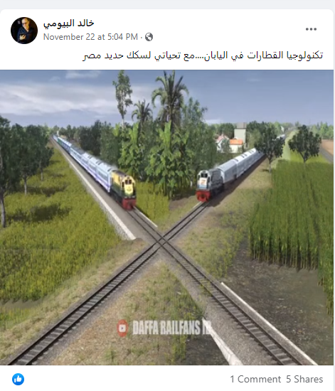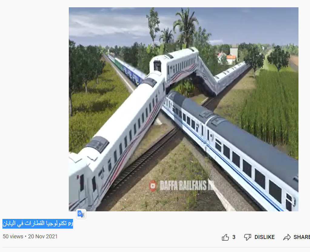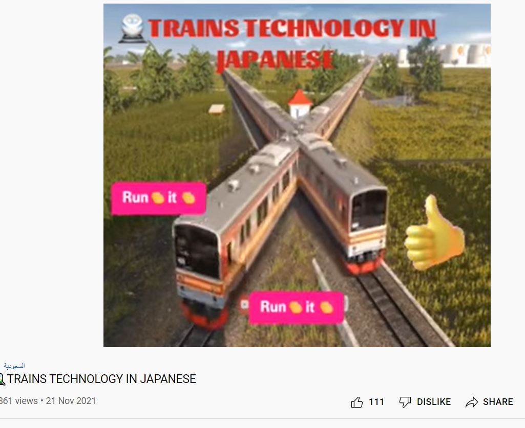 جاپان کی نئی ٹیکنالوجی سے منسوب کرکے ٹرینوں کا ایک ویڈیو شیئر کیا جا رہا ہے۔ ویڈیو میں ٹرینیں کبھی ایک ٹرین کے اوپر سے تو کبھی نیچے سے تو کبھی ٹرین کے درمیان سے گذرتی ہوئی نظر آرہی ہیں۔ صارف نے ویڈیو کے ساتھ عربی کیپشن لکھا ہے، جس کا ترجمہ ہے کہ “جاپان کی اس ٹرین میں بہت ہی ایڈوانس ٹیکنالوجی موجود ہے”۔