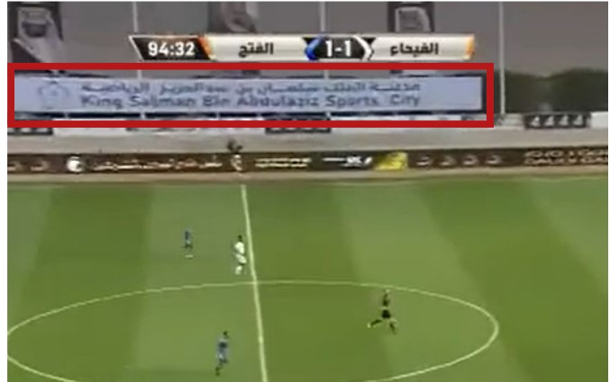 2018 کی ویڈیو میں ہم نے اسٹیڈیم کے ایک کنارے پر لگے ہورڈنگ کو دیکھا تو ، اس پر شاہ سلمان بن عبدالعزیز اسٹپورٹ سٹی لکھا ہوا نظر آیا۔ہورڈنگ کے اوپری حصے پر سعودی عرب کے بادشاہ سلمان بن عبدالعزیز اور ولی عہد شہزادہ محمد بن سلمان کے سیاہ اورسفید پورٹریٹ بھی دیکھے جا سکتے ہیں۔