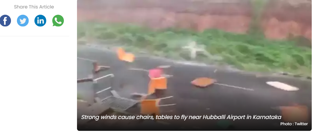 طوفان کی وجہ سے ہوا میں اڑتے میز و کرسی کی یہ ویڈیو تقریباً 1 سال پرانی ہے اور ہبلی ہوائی اڈے کے نزدیک موجود کینٹین کی ہے۔