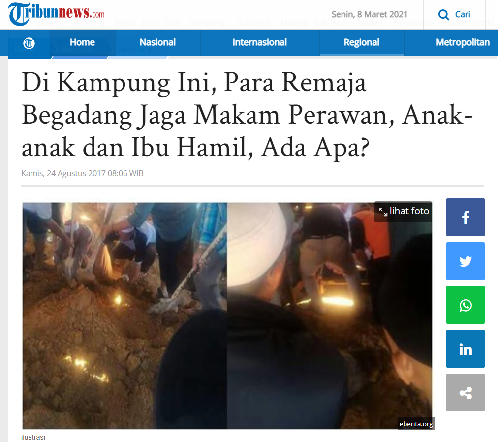 Tribiun:https://www.tribunnews.com/regional/2017/08/24/di-kampung-ini-para-remaja-begadang-jaga-makam-perawan-anak-anak-dan-ibu-hamil-ada-apa