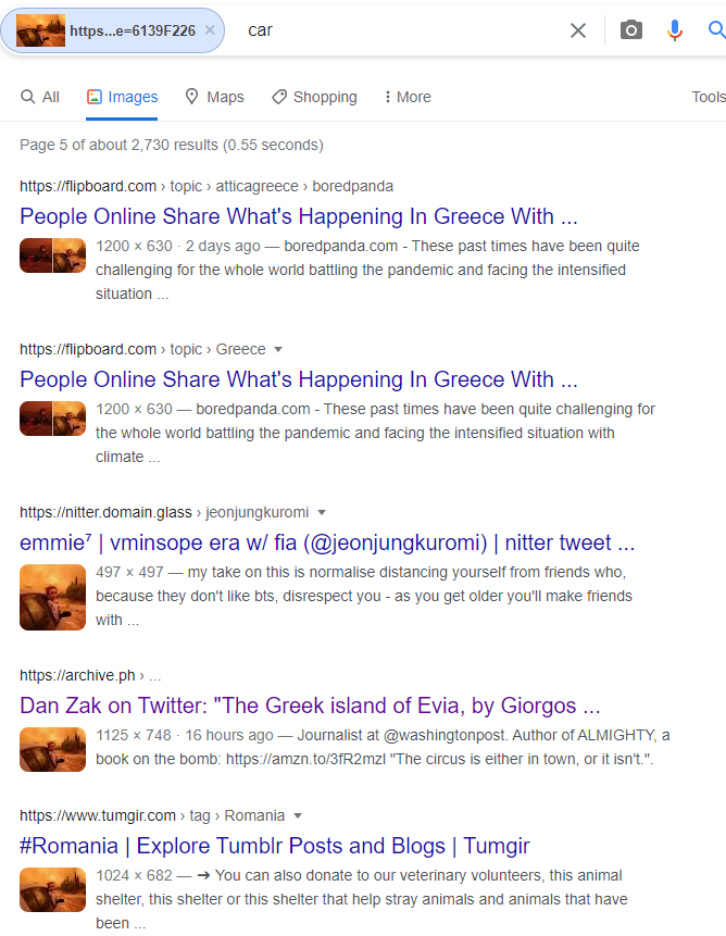 پھر ہم نے فیس بک اور انسٹاگرام پر جورجيوس موتافيس کیورڈ سرچ کیا۔ جہاں میں اس نام کے پروفائل ملے۔ جس میں وائرل تصویر اور دیگر اسی سے ملتی جلتی دیگر تصاویر بھی ملیں، جو دوسرے اینگل سے کلک کی گئی ہیں۔ وائرل تصویر کو یونان کے ایوا کا بتایا گیا ہے، اس تصویر کو 8 اگست 2021 کو جورجيوس موتافيس نے کلک کیا تھا۔