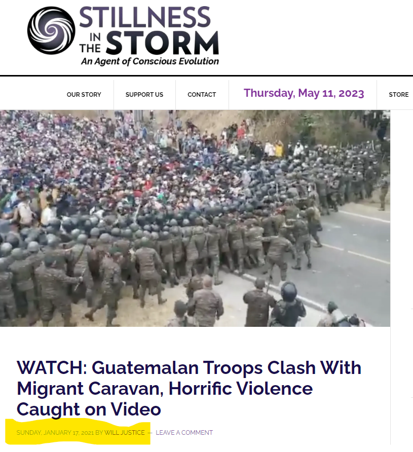 پولس اور عوام کے درمیان تصادم والی وائرل ویڈیو کے ایک فریم کو ہم نے ین ڈیکس سرچ کیا۔ جہاں ہمیں 17 جنوری 2021 کو شائع شدہ اسٹیل نیس ان دی اسٹورم نامی نیوز ویب سائٹ پر ہوبہو ویڈیو ملی۔ جس میں اس ویڈیو کو گوئٹےمالا فوجی اور تارکین وطن کے درمیان ہوئے تصادم کا بتایا گیا ہے۔