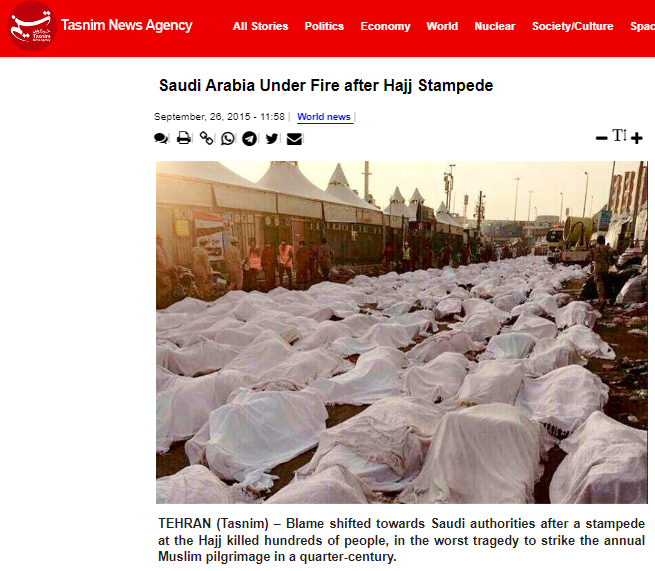 ہم نے تصویر کو ریورس امیج سرچ کیا ،جہاں ہمیں یہی تصویر 26 ستمبر 2015 کو شائع شدہ ایرانی نیوز ویب سائٹ تسنیم نیوز ایجنسی پر موصول ہوئی۔ جس کے مطابق یہ تصویر مقدس شہر مکہ مکرمہ میں حج کے دوران ہوئے ایک سانحے کی ہے۔