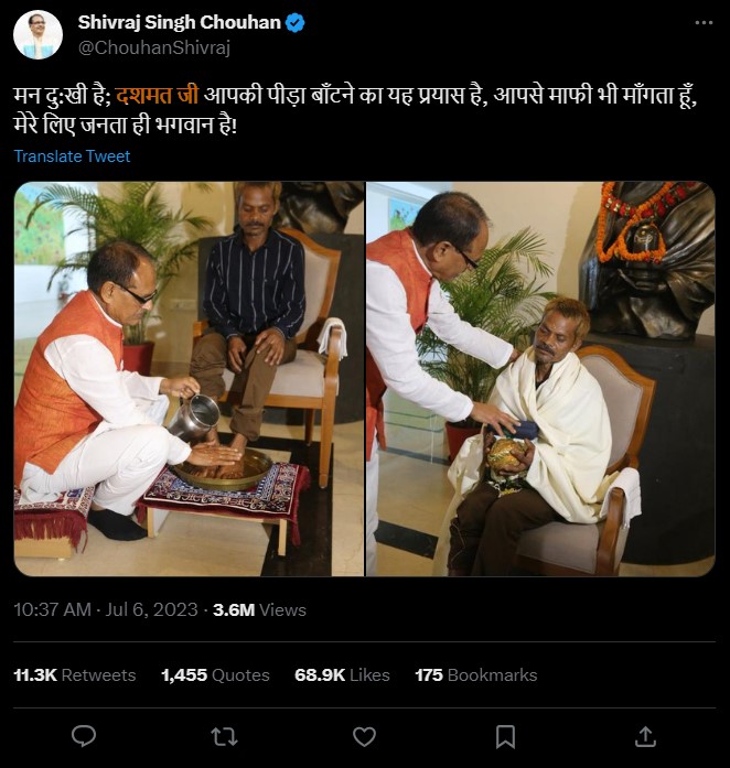سرچ کے دوران ہمیں مدھیہ پردیش کے وزیر اعلیٰ شیوراج سنگھ چوہان کے آفیشل ٹویٹر ہینڈل پر متاثر شخص سے متعلق کئی ٹویٹس ملے۔ جس میں قبائلی طبقے سے تعلق رکھنے والے متاثر شخص کا نام دشمت بتایا گیا ہے۔