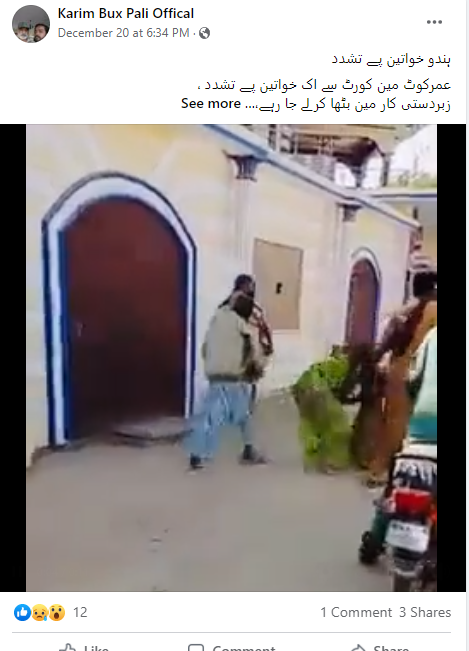 اس کے علاوہ فیس بک اور ٹویٹر پر دیگر صارفین نے بھی ویڈیو کے ساتھ ہندو خاتون کو اغوا کرنے بعد قتل کرنے کا بتاکر شیئر کیا ہے۔