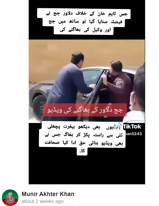 اس طرح نیوز چیکر کی تحقیقات سے یہ ثابت ہوا کہ وائرل ویڈیو کم از کم ڈھائی سال پرانی ہے اور اس میں نظر آرہے لوگ جج ہمایوں دلاور اور ان کے وکیل نہیں ہیں بلکہ پی ٹی آئی لیڈر کریم بخش گبول اور پارٹی کارکنان ہیں۔