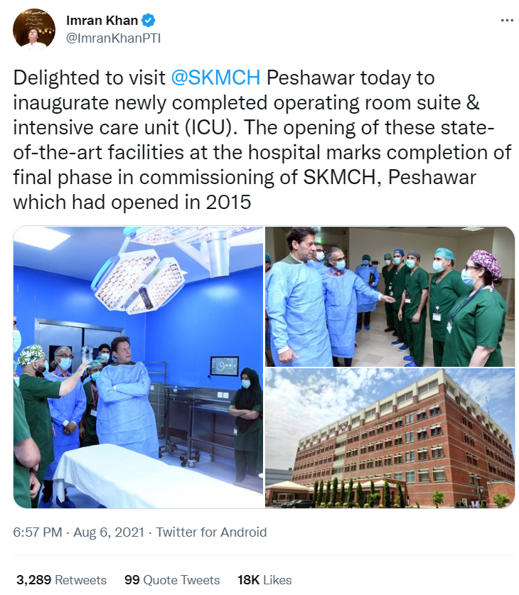 Tweet by @ImranKhanPTI on 06/ Aug/ 2021
