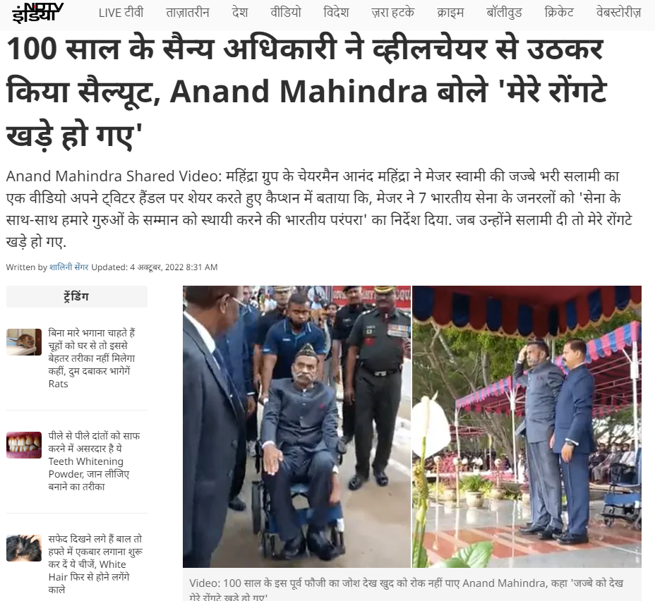 Media report published by NDTV on 3 Oct 2022