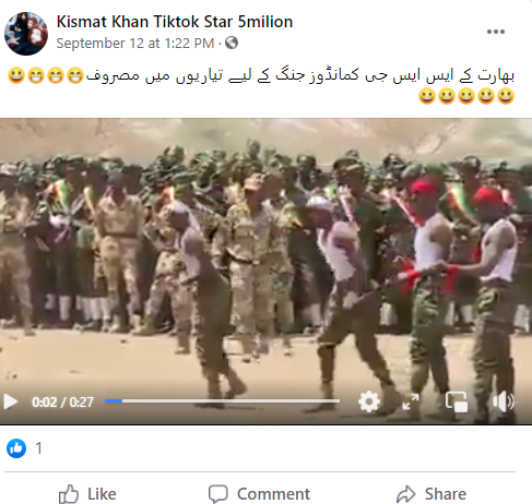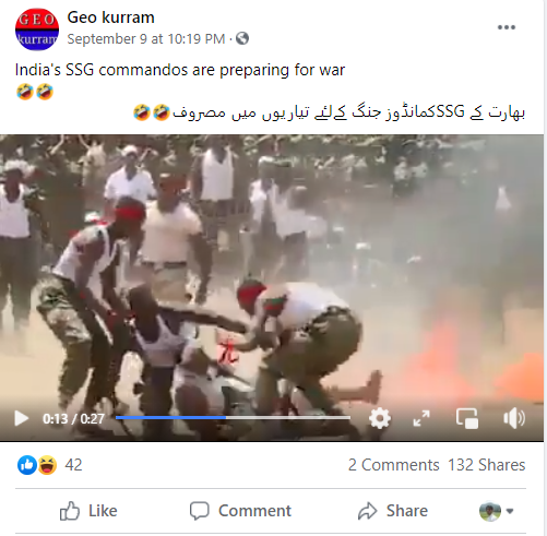 سوشل میڈیا پر فوجی جوان کے مشق کا ویڈیو خوب گشت کر رہا ہے۔ صارفین کا دعویٰ ہے کہ یہ جوان بھارت کے ‘ایس ایس جی کمانڈوز’ ہیں، جو جنگ کی تیاری کر رہے ہیں۔ اس ویڈیو کو انگلش کیپشن کے ساتھ افغانستان کے خلاف جنگ کی تیاری کا بھی بتاکر شیئر کیا جا رہا ہے۔