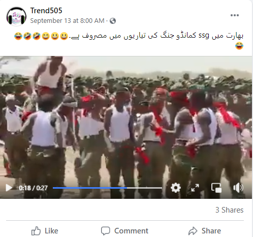 صارفین کا دعویٰ ہے کہ یہ ویڈیو بھارتی فوج کا ہے جو جنگ کی تیاری کر رہے ہیں۔ بتادوں کو اس ویڈیو کو طنزیہ طور پر بھی کچھ یوزرس شیئر کر رہے ہیں۔ جسے آپ درج ذیل میں دیکھ سکتے ہیں۔