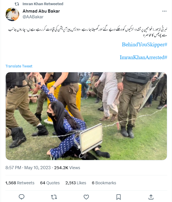 پاکستان تحریک انصاف کے چیئرمین عمران خان کی گرفتاری کے بعد ملک بھر میں احتجاج کیا گیا۔ اسی کے پیش نظر سوشل میڈیا صارفین عمران خان کی حمایت میں ہو رہے احتجاج سے منسوب کرکے طرح طرح کی تصاویر اور ویڈیوز شیئر کر رہے ہیں۔ ان دنوں ٹویٹر پر ایک خاتون کی تصویر شیئر کی جا رہی ہے، جس میں پولس خاتون کو گھسیٹ رہی ہے۔ دعویٰ کیا جا رہا ہے کہ اس تصویر میں بھارتی فورس کشمیری لڑکی کو گھسیٹ رہی ہے۔