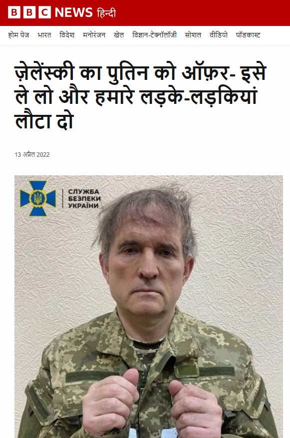 بی بی سی ہندی کی رپورٹ کے مطابق روس یوکرین جنگ کے دوران یوکرین کی سکیورٹی ایجنسی ایس بی یو نے یہ تصویر پوسٹ کی تھی، جس میں دعویٰ کیا گیا تھا کہ انہوں نے روس کے حمایت یافتہ مفرور سیاستدان وکٹر میدویدچوک کو گرفتار کر لیا ہے۔ اس دوران یوکرین کے صدر ولادیمیر ژیلینسکی نے بھی روس سے اپیل کی تھی کہ وہ وکٹر میدویدچک کے بدلے ان کی قید میں موجود لڑکوں اور لڑکیوں کو رہا کرے ۔