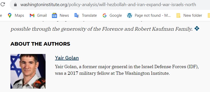 اس کے بعد ہم نے دائیں جانب والی تصویر کو گوگل ریورس امیج سرچ کیا ۔ جہاں ہمیں یہ تصویر واشنگٹن انسٹی ٹیوٹ کی ویب سائٹ پر شائع ہونے والی رپورٹ میں ملی۔ تصویر کے کیپشن میں لکھا ہے کہ یہ اسرائیل کے سابق میجر جنرل یائر گولن ہیں۔