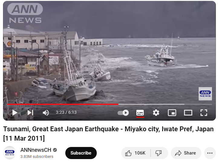 ویڈیو 12 سال پرانی اور جاپان کے میاکو میں آئی سونامی کی ہے۔