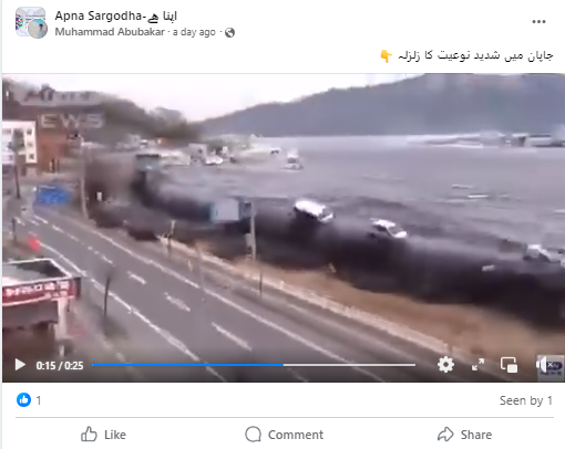 صارفین کا دعویٰ ہے کہ بحری کشتیوں کے ساحل سے ٹکرانے اور تیز پانی کی لہروں میں گاڑیوں کے بہنے کی یہ ویڈیو جاپان میں آنے والے حالیہ زلزلے کے بعد سونامی کی ہے۔