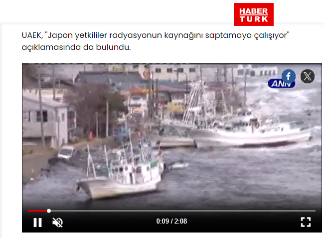 جاپان میں زلزلے کے بعد سونامی سے منسوب وائرل ویڈیو کے ایک فریم کو ہم نے گوگل ٹین آئی پر سرچ کیا۔ جہاں ہمیں 13 مارچ 2011 کو شائع شدہ ترکی ویب سائٹ ھیبر ترک پر ہوبہو ویڈیو ملی۔ جس میں وائرل ویڈیو کو جاپان میں آئی سونامی کا بتایا گیا ہے۔