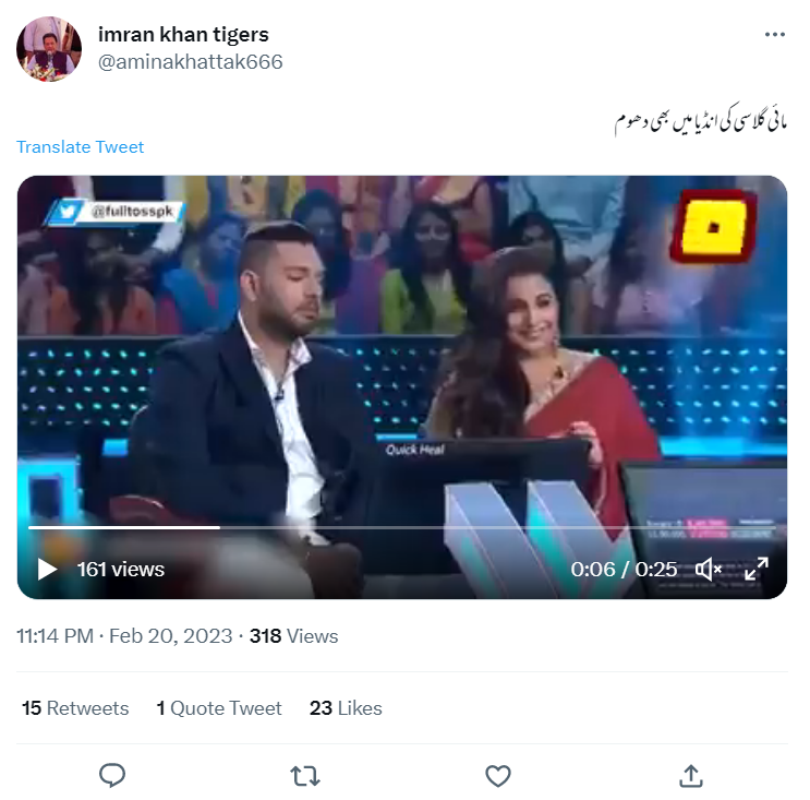 بتادوں کہ اس ویڈیو کو فُل ٹاس پی کے نام کے آفیشل ٹویٹر ہینڈل سے 20 فروری 2023 کو “مریم نواز کے ہمسایہ ملک میں بھی چرچے” کیپشن کے ساتھ شیئر کیا گیا تھا۔ جس کے بعد دیگر صارفین ویڈیو کو الگ الگ کیپشن کے ساتھ شیئر کر رہے ہیں۔