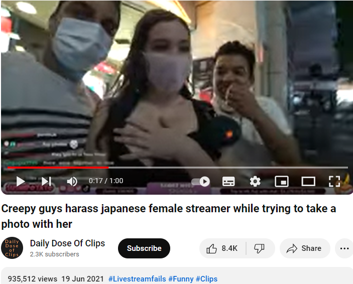 بھارتی طالب علموں کی جانب سے کرغستانی خاتون کو ہراساں کرنے کا بتاکر شیئر کی گئی ویڈیو کے ایک فریم کو ہم نے گوگل ریورس امیج سرچ کیا۔ جہاں ہمیں ڈیلی ڈوز آف کلپس نامی یوٹیوب چینل پر ہوبہو ویڈیو ملی۔ جس کے مطابق یہ معاملہ جاپان کی سوشی پٹیٹو نامی ٹُوچ لائیو اسٹریمر کو جاپان کے شنجوکو میں ہراساں کئے جانے کا ہے۔ اس حوالے سے دیگر میڈیا رپورٹس یہاں پڑھ سکتے ہیں۔